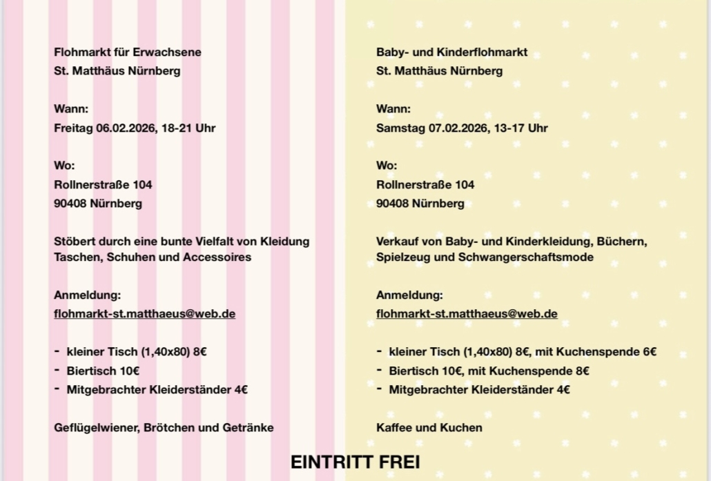 Herzliche Einladung zu unseren Flohmärkten